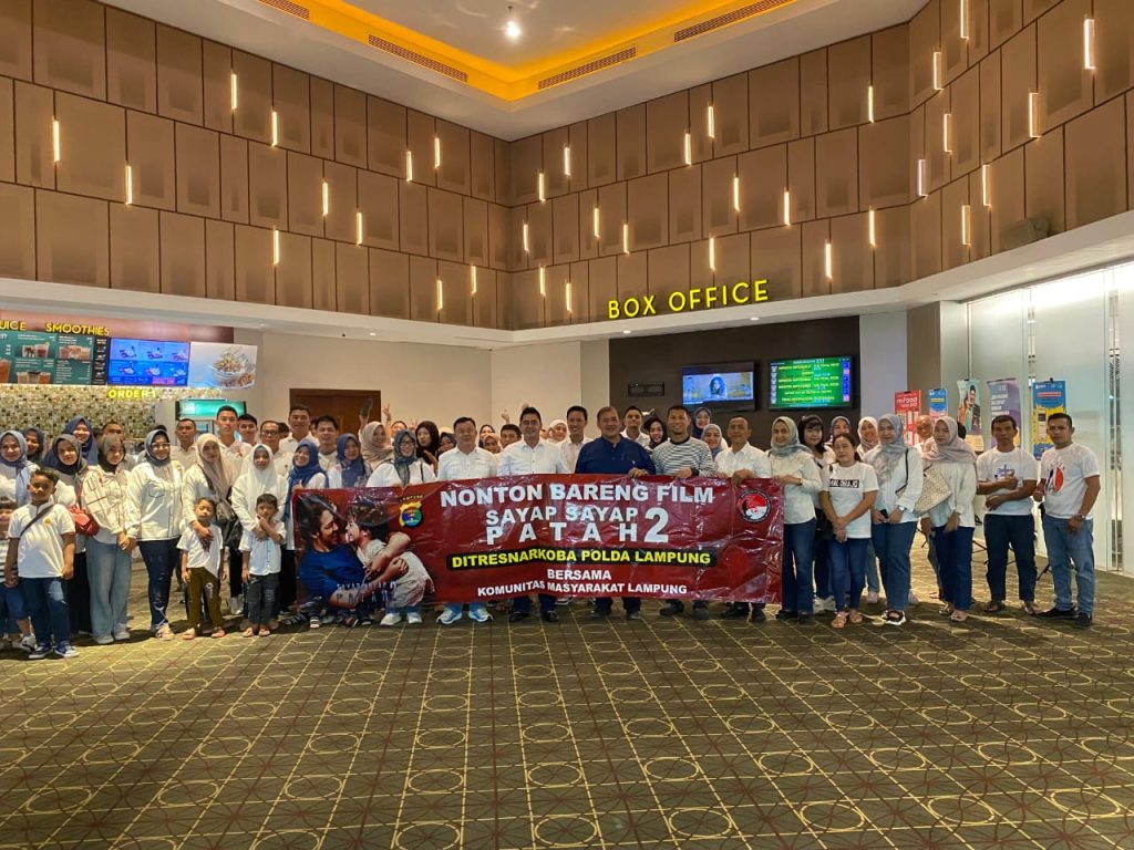 Shafaindonesia.com -Bandar Lampung , Dalam upaya memperkuat sinergitas antara aparat kepolisian dan masyarakat, Direktorat Reserse Narkoba (Ditresnarkoba) Polda Lampung menggelar kegiatan nonton bareng film “Sayap-Sayap Patah 2” di Cinema XXI, Mall Bumi Kedaton (MBK), Bandar Lampung, Selasa (27/5/2025).