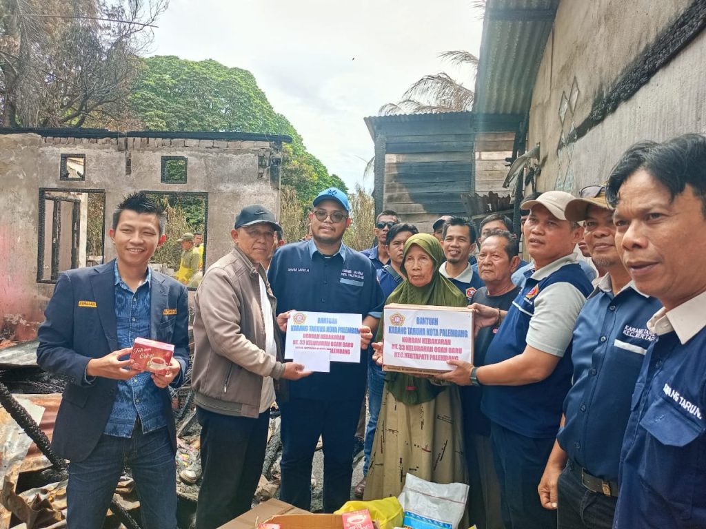 Palembang, SUMSEL -Organisasi Karang taruna kota Palembang dan karang taruna kecamatan Kertapati Mengelar aksi Peduli Dampak kebakaran di jalan ki kemas Rindo RT 33 Kelurahan Ogan Baru kecamatan Kertapati Kota Palembang,Sabtu (5/7/2025).