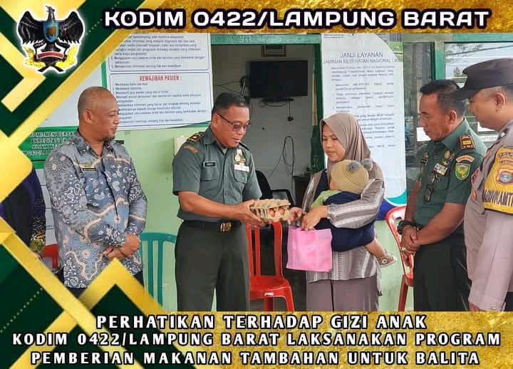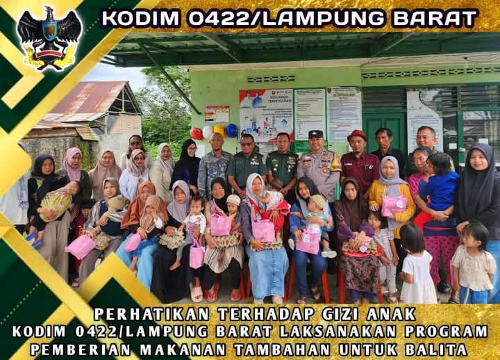 Lampung Barat — Dalam upaya meningkatkan status gizi anak usia dini dan mencegah risiko stunting, Kodim 0422/Lampung Barat melaksanakan kegiatan Pemberian Makanan Tambahan (PMT) kepada balita di wilayah binaannya.