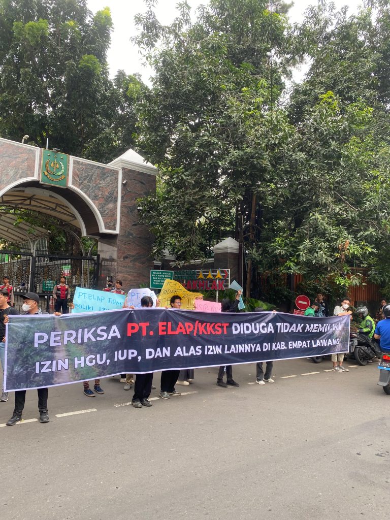 Mereka meminta Kejagung untuk memeriksa dan menindak tegas PT Elap yang membuka lahan sawit di Kabupaten Empat Lawang.