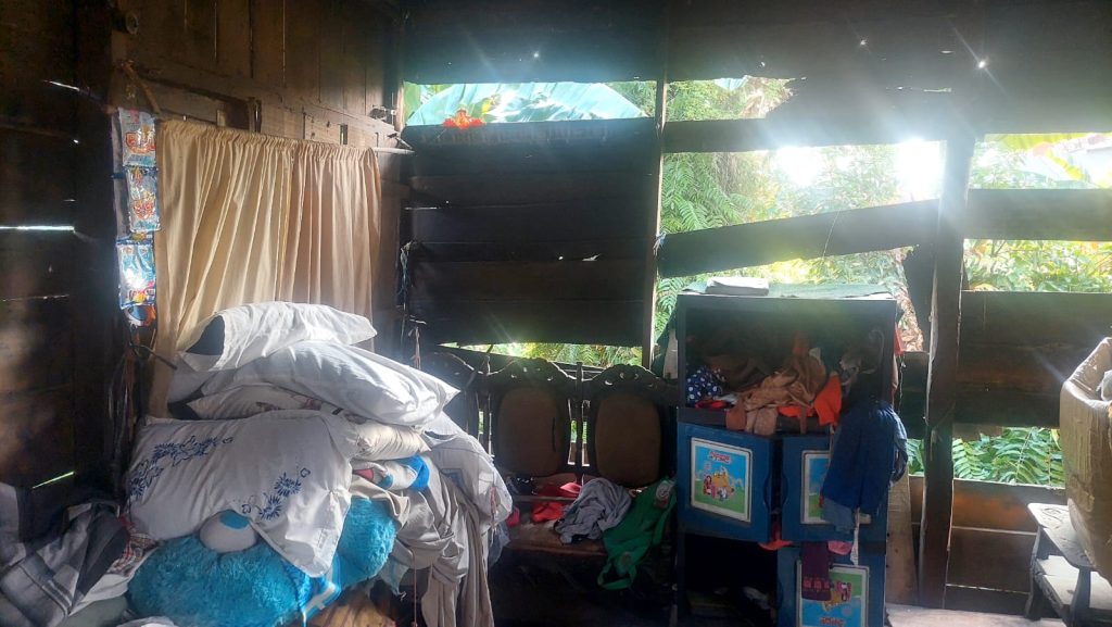 Kondisi rumah peninggalan suaminya jauh dari kata layak huni. Dinding papan yang rapuh sudah banyak terlepas, atap rumah berlubang hingga setiap kali hujan deras air masuk dan membasahi seisi rumah. Saat malam, udara dingin menembus ke dalam rumah, membuat penghuni harus bertahan dengan segala keterbatasan. Perabotan rumah pun tampak seadanya, berserakan di sudut-sudut ruangan.