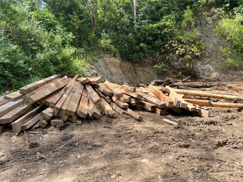 Saat di lokasi, tim GMBI Pesisir Barat melihat ada tumpukan kayu minyak dan kayu lain yang sudah jadi balokan sepanjang empat meter. Dengan berbagai jenis ukuran di Sahbardong, Pesisir Utara.