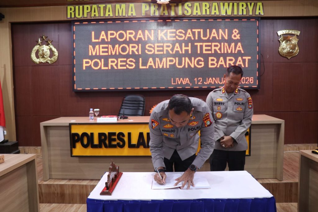 Shafaindonesia.com//Lampung Barat – Kepemimpinan di lingkungan Polres Lampung Barat resmi mengalami pergantian. Jabatan Kapolres Lampung Barat yang sebelumnya dijabat oleh AKBP Rinaldo Aser, S.H., S.I.K., M.Si., kini diserahterimakan kepada AKBP Samsu Wirman, S.H., S.I.K., M.H. Pergantian jabatan ini merupakan bagian dari kebijakan pimpinan Polri dalam rangka penyegaran organisasi serta pembinaan karier personel.Senin, 12 Januari 2026